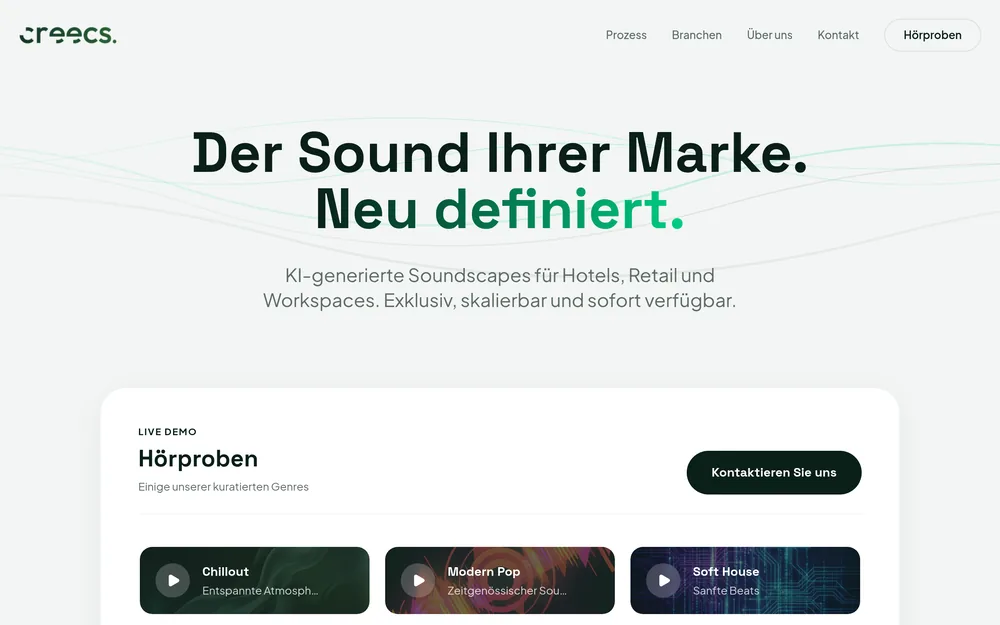 Marketing site for a sonic identity agency, built around interactive audio demos, per-track players, and scroll-driven motion. Remotion-rendered videos for the showcase sections.