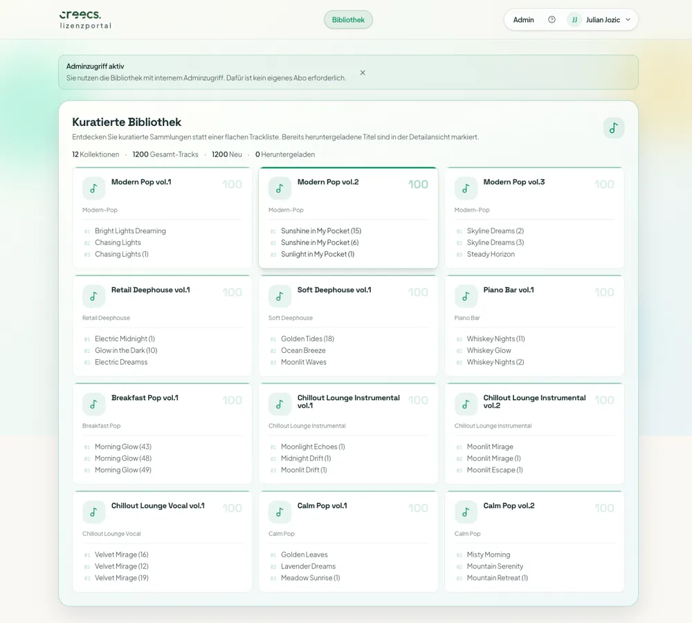Music licensing SaaS: tiered subscriptions, streaming demo library, signed-URL audio delivery from R2, and a per-track license contract flow. Deployed as two Cloudflare Workers (frontend + Hono API), with Stripe billing and Better Auth.