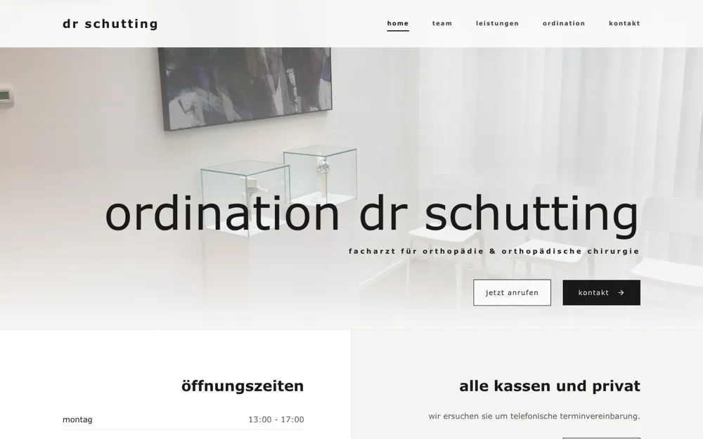 Practice site for an orthopedic surgeon, with a PHP-backed holiday notice system (admin-controlled) and an OpenStreetMap location view that works without third-party tracking.